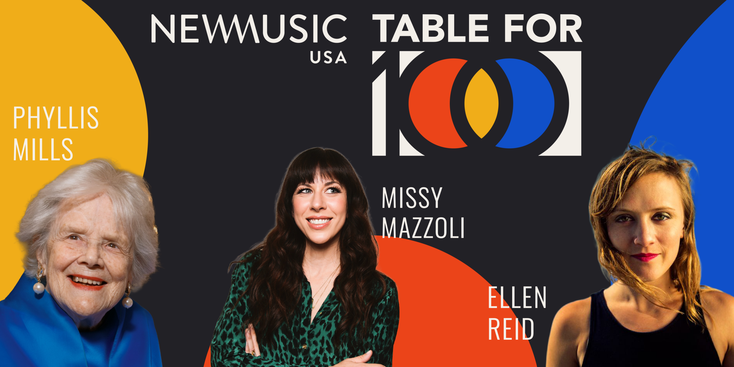 Now in its third year, New Music USA’s Table for 100 brings new music lovers together with some of the most compelling creators and champions in our community. This year, we are proud to honor three extraordinary leaders whose work is shaping the future of new music: Phyllis Mills, visionary philanthropist and steadfast supporter of our field; composer Ellen Reid, whose expansive and immersive works are redefining how audiences experience sound; and Missy Mazzoli, a composer whose bold, genre-defying voice has transformed contemporary classical music. Each honoree’s impact has helped build a stronger, more inclusive, and vibrant new music ecosystem.
